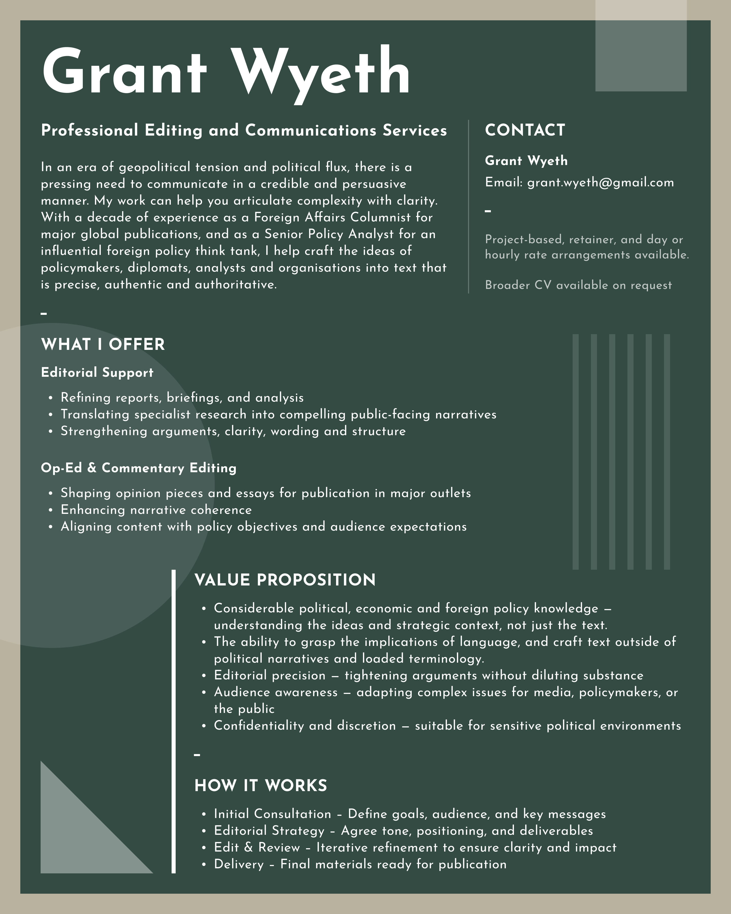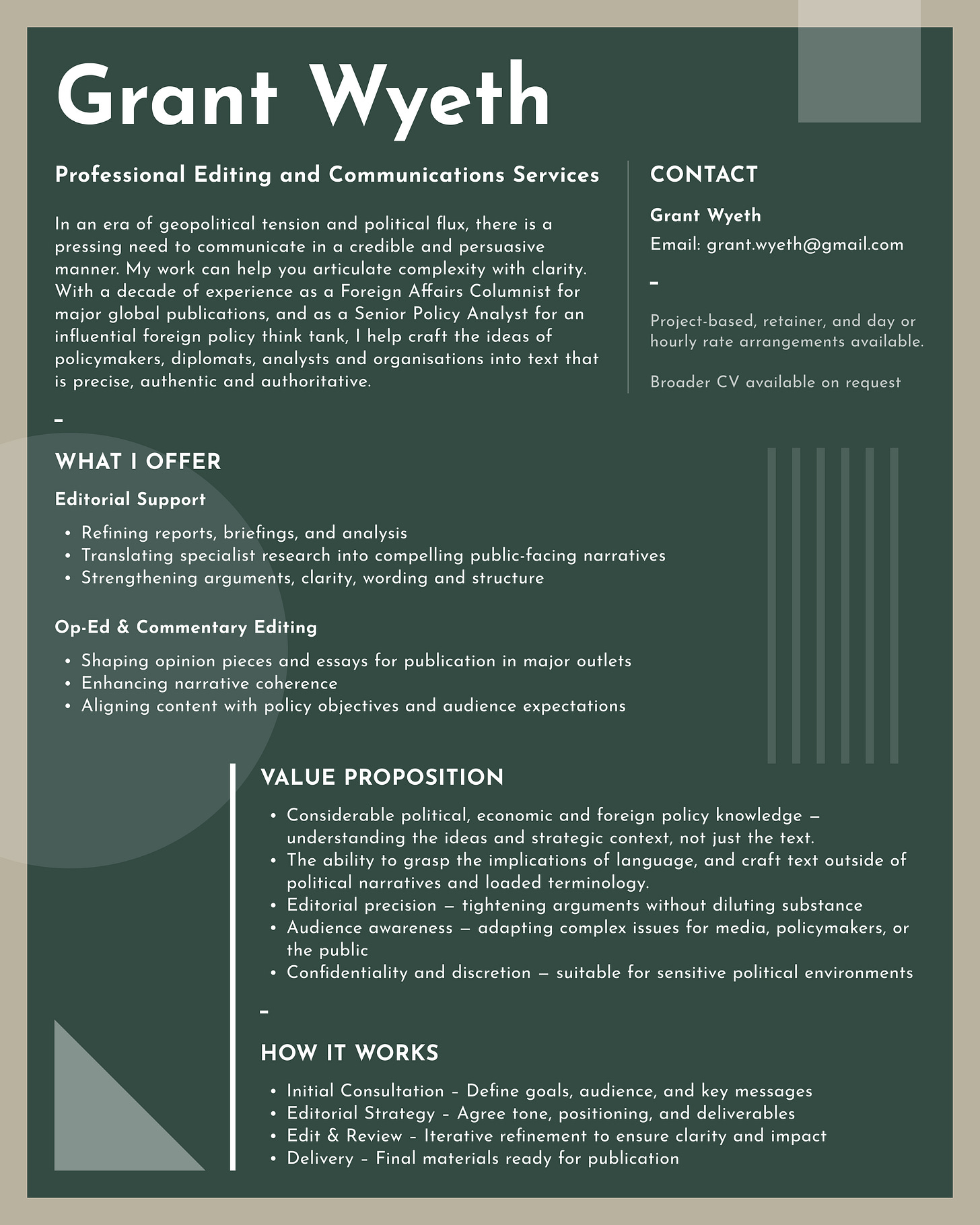 In the meantime, I thought I’d also offer my services as an freelance editor. Should the right full-time job not materialise immediately, this would buy me some time and flexibility to work on my book idea and other personal writing. It would also allow me to focus on one of my great loves – being infuriatingly pedantic about language use and its implications.